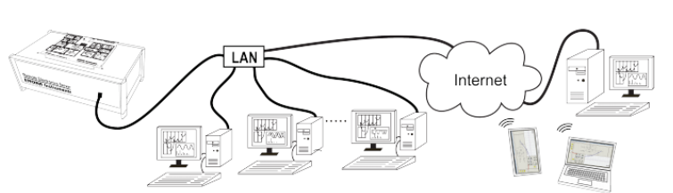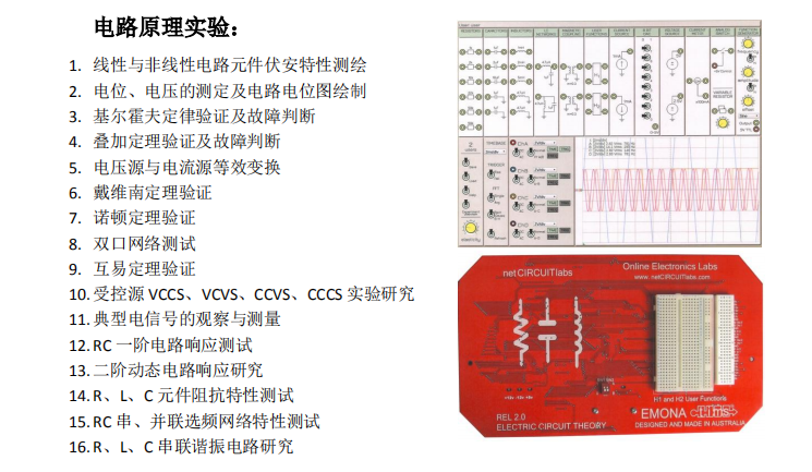 NetCircuit远程实验系统是由一套硬件设备。实验室只需要配备一套硬件设备,将它与网络服务器相连。 学生通过网络,就可以访问到这台服务器,从而在硬件设备上完成实验。实验中,学生通过计算机,远程控制硬件设备上的开关旋钮电位器,对硬件设备进行操作,服务器会将硬件设备上测量得到的信号传送回学生客户端,在虚拟仪器上显示。区别于一般的虚拟仿真软件,这种架构下,信号完全来自于真实的硬件。