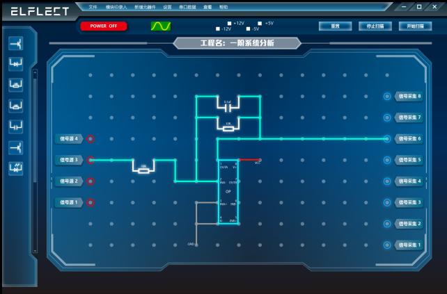 配合ELF-BOX 提供智能硬件平台,在此硬件平台上插入电阻、电容、三极管等元器件,配套的软件系统会在PC或者其它显示终端自动识别元器件种类及相关参数,在线实践软件可以根据检测硬件实物的器件特性后在软件上进行电路连接,电路完成后可以将命令发送到硬件平台。硬件平台实现现实电路自动连接。从而实现仿真和实际电路验证结合,解决动手能力和软件仿真相结合的问题。
