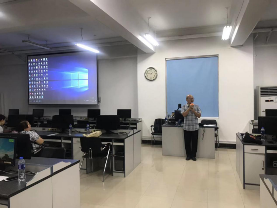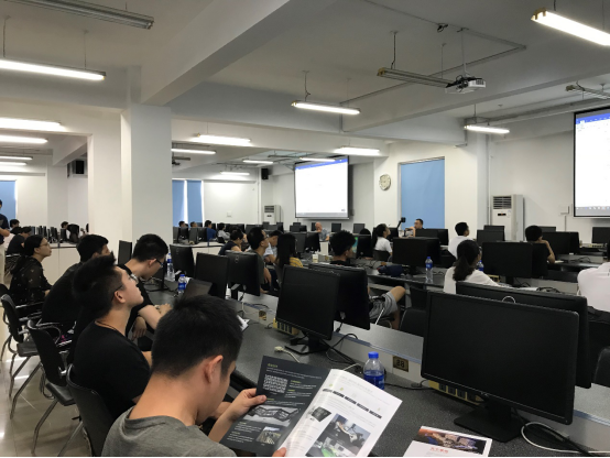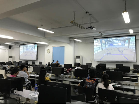 现场演示了包括虚拟现实软件功能培训、虚拟现实场景(涉及材质、灯光、天气、水体、植被、草地等场景)效果编辑和练习、虚拟现实动画、交互功能学习制作等内容,并以实际教学案例为demo进行实操演练,“干货”满满。