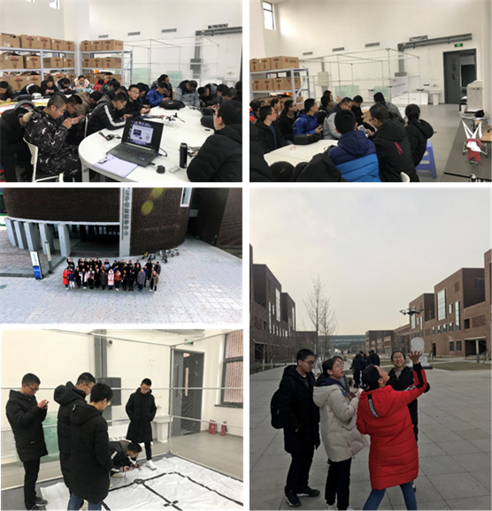 电气电子实验教学中心在两天时间里为平凉一中的同学们安排了非常丰富的活动内容,第一天的活动主要包括:在EDA实验室由肖谧和王达为同学们讲解了利用MultiSim仿真软件研究电桥法测电阻、补偿法测电阻、二极管的伏安特性测量、信号源和示波器的工作原理、RC电路充放电波形观测等;在电工技术实验室由肖谧和张云松为同学们讲解了电容器的测量,黑箱电阻的测量,稳压电源、电压表、电流表、万用表的使用,半导体材料、N型P型半导体材料、PN结以及二极管的工作原理,二极管伏安特性的测量,示波器、信号源的使用等。同学们通过亲自动手实践,极大的丰富了对相关知识的理解,扩散了认知。平凉一中带队老师在了解了MultiSim仿真后也表示没想到现在的仿真技术已如此强大了,并打算在平凉一中也引入相关的教学内容。卢学英、李莹、李宏跃等老师也辅助完成了在电工技术实验室的教学活动。第二天的活动主要包括:在电子工艺实习实验室由肖谧和叶振忠为同学们讲解示范了电子线路的焊接工艺,以及摇摇棒的工作原理及焊装过程等;在学生科技创新实验室由李宏跃为同学们讲解了四旋翼、固定翼无人机的工作原理,四旋翼无人机图形化编程及调试等内容,演示了无人机群控编队,组织学生进行室外航拍合影留念,并指导学生设计程序控制无人机完成了指定任务。由于第二天的学习内容都属于课外性质,同学们都很放松,也很兴奋。在完成了摇摇棒的焊装任务后,同学们互相比较谁的工艺更好,并在老师的帮助下将显示的文字更换为自己喜欢的内容。在无人机调试时,同学们对无人机爱不释手,抢着完成相关的任务。