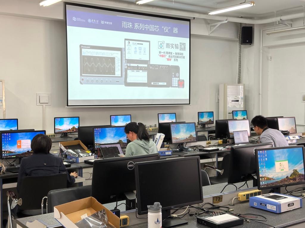 此次产学合作师资培训内容围绕雨骤科技一周前在教育部在线教育研究中心智慧教学研讨会上发布的全新一代雨课堂智慧实验(雨实验)展开。雨骤科技全球销售与市场副总裁李甫成及中国区技术支持团队分别现场演示了“雨实验”智慧实验解决方案的软硬件平台功能。本次培训帮助参与教师深入了解了“中国芯”自主可控片上虚拟仪器技术如何与大电类实验相结合,真正入门上手了全新一代自主可控“雨珠S”片上虚拟仪器硬件平台,动手实操了基于开源框架设计的雨骤“仪器操场(Instruments Playground)”软件中的12种仪器,简要了解了允许用户自定义仪器功能的“雨骤云编译”云服务,以及体验了如何通过“雨课堂雨实验”平台完成智慧实验的全数字化转型。